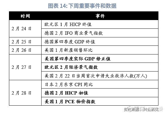 此外,本周公布的好意思国经济数据略显转弱迹象。好意思国1月新屋开工环比-9.8%,预期-7.3%,前值16.1%;2月15日当周初度苦求恬逸挽救东说念主数21.9万东说念主,预期21.5万东说念主,前值21.3万东说念主;1月谘商会率先缱绻环比-0.3%,预期和前值为-0.1%;2月工功课、详细PMI回落且不足预期,但制造业反弹幅度逾越预期。