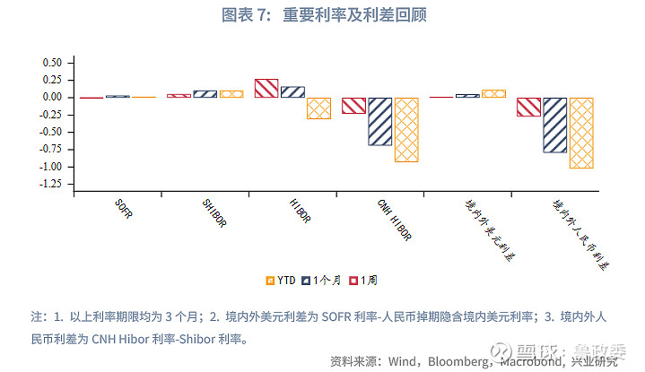 好意思元流动性方面,3M境内掉期隐含好意思元利率、SOFR利率保管触动,境表里好意思元利差(境外-境内)变化不昭着。
